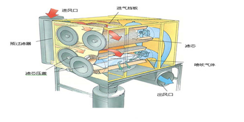 5、 除塵器清灰采用脈沖噴吹在線清灰方式。清灰過(guò)程由脈沖控制儀自動(dòng)控制,用戶可根據(jù)需要采用時(shí)間控制方式進(jìn)行清灰。除塵器內(nèi)設(shè)置多個(gè)濾筒以增加其有效過(guò)濾面積,當(dāng)某個(gè)(對(duì))濾筒滿足清灰設(shè)定要求時(shí),即啟動(dòng)噴吹裝置進(jìn)行清灰,其他濾筒正常工作,這樣既達(dá)到了清灰效果又不影響設(shè)備運(yùn)行,使除塵器可連續(xù)運(yùn)轉(zhuǎn);