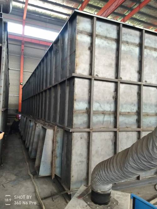 2.除塵器本體采用框架結(jié)構(gòu),上箱體、灰斗及側(cè)板與框架間采用連續(xù)焊接,保證良好的密封性能,中箱體側(cè)板焊有由型材組成的筋板,使箱體具有足夠的抗壓強(qiáng)度。
