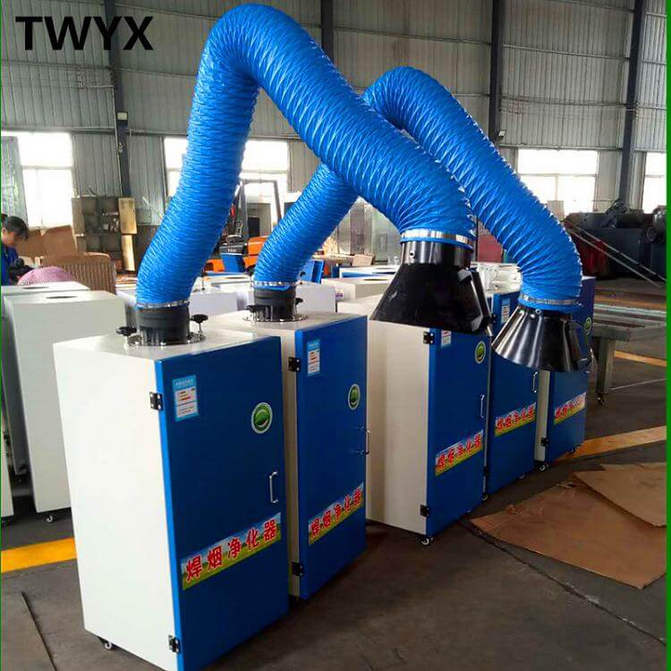 在煙塵凈化系統(tǒng)運行的過程中,有害的顆粒粉塵通過吸氣臂進入凈化體統(tǒng),凈化系統(tǒng)外面的防飛濺火花分離裝置,可以阻擋緩沖在管道內隨氣流快速滾動的飛濺和大顆粒的煙塵,并被直接分離掉入下方的煙塵收集抽屜。