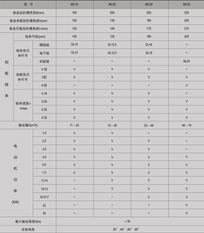 MC型埋刮板輸送機主要參數(shù)